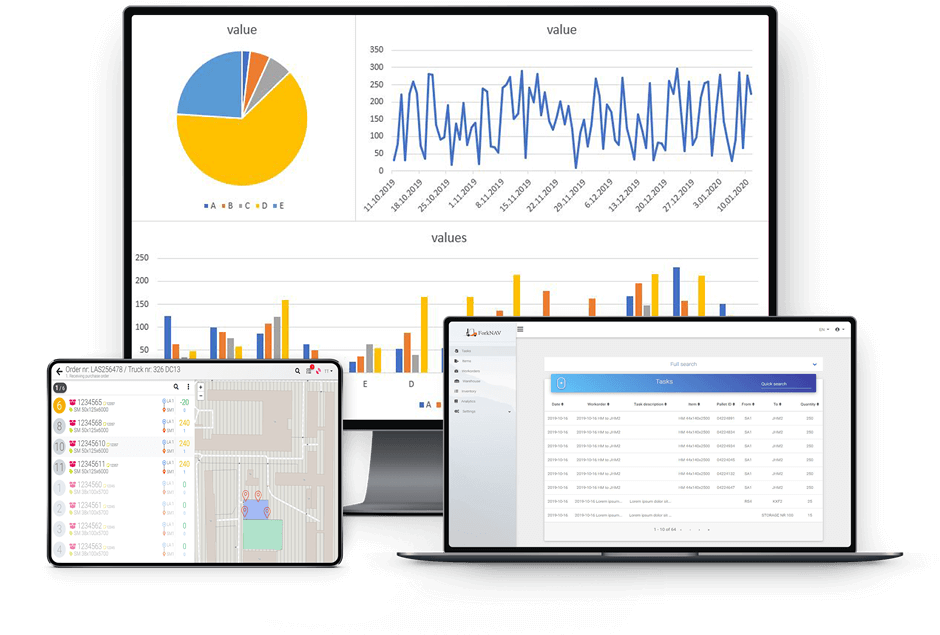 forkNAV will organize and optimize how forklifts work in warehouse thus save time 20-30% which is today wasted on finding items